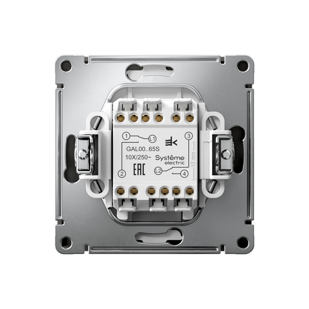 Механизм с быстрозажимными клеммами Systeme Electric серии ArtGallery в цвете базальт переключателя 2-клавишного подходит для сетей 250 В, на ток 10 А. С помощью новых быстрозажимных клемм монтаж стал быстрее. Для подключения не требуется отвертка. Решение для ценителей матовых поверхностей в интерьере, к которым приятно прикоснуться. Лицевые детали из качественного ABS-пластика, устойчивого к царапинам и УФ-излучению. Лучший промышленный дизайн (по итогам премии МИНПРОМТОРГ 2023).