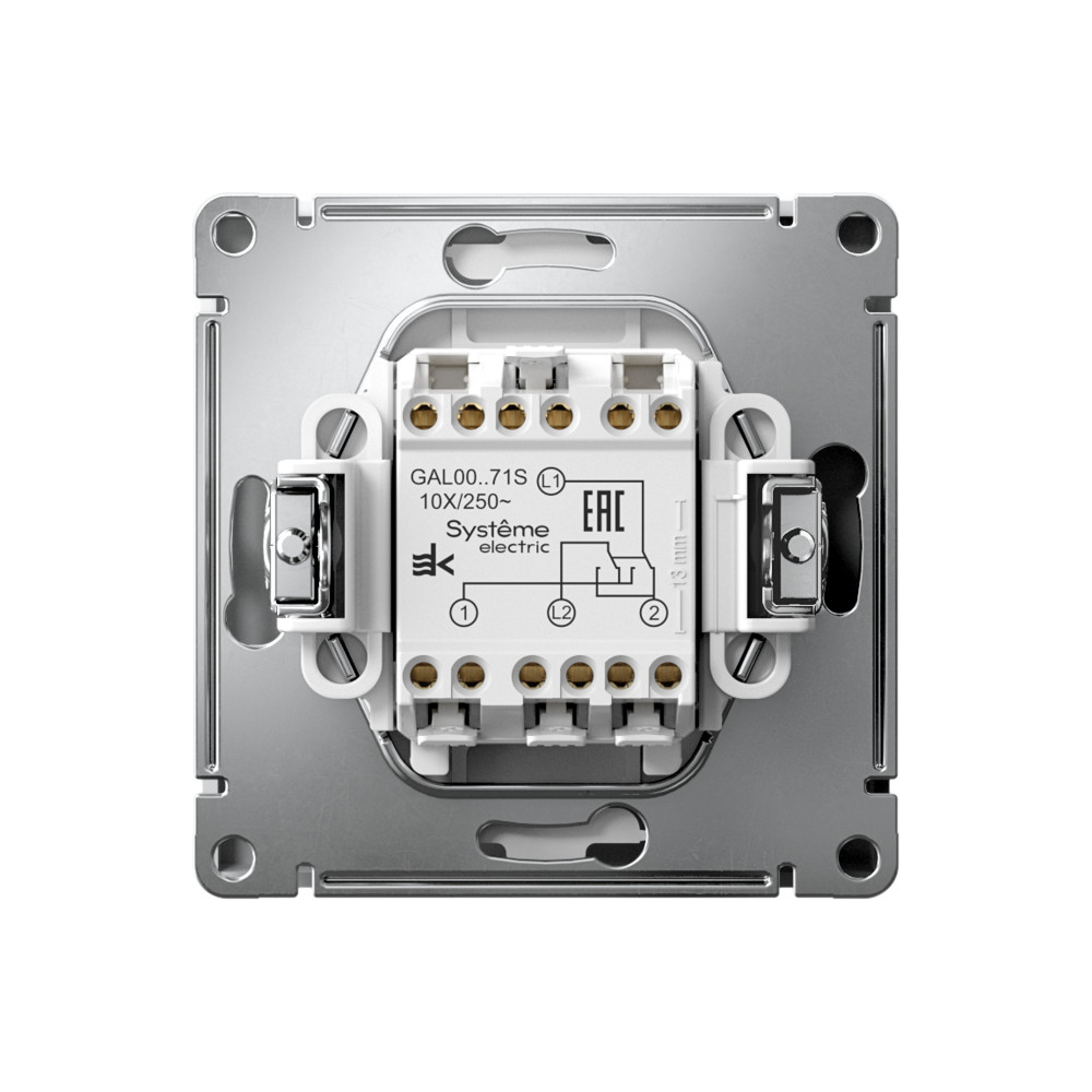Механизм с быстрозажимными клеммами Systeme Electric серии ArtGallery в цвете белый переключателя 1-клавишного перекрестного подходит для сетей 250 В, на ток 10 А. С помощью новых быстрозажимных клемм монтаж стал быстрее. Для подключения не требуется отвертка. Пластик с ионами серебра в белом цвете обеспечивает антибактериальный эффект. Лицевые детали из качественного ABS-пластика, устойчивого к царапинам и УФ-излучению. Лучший промышленный дизайн (по итогам премии МИНПРОМТОРГ 2023).