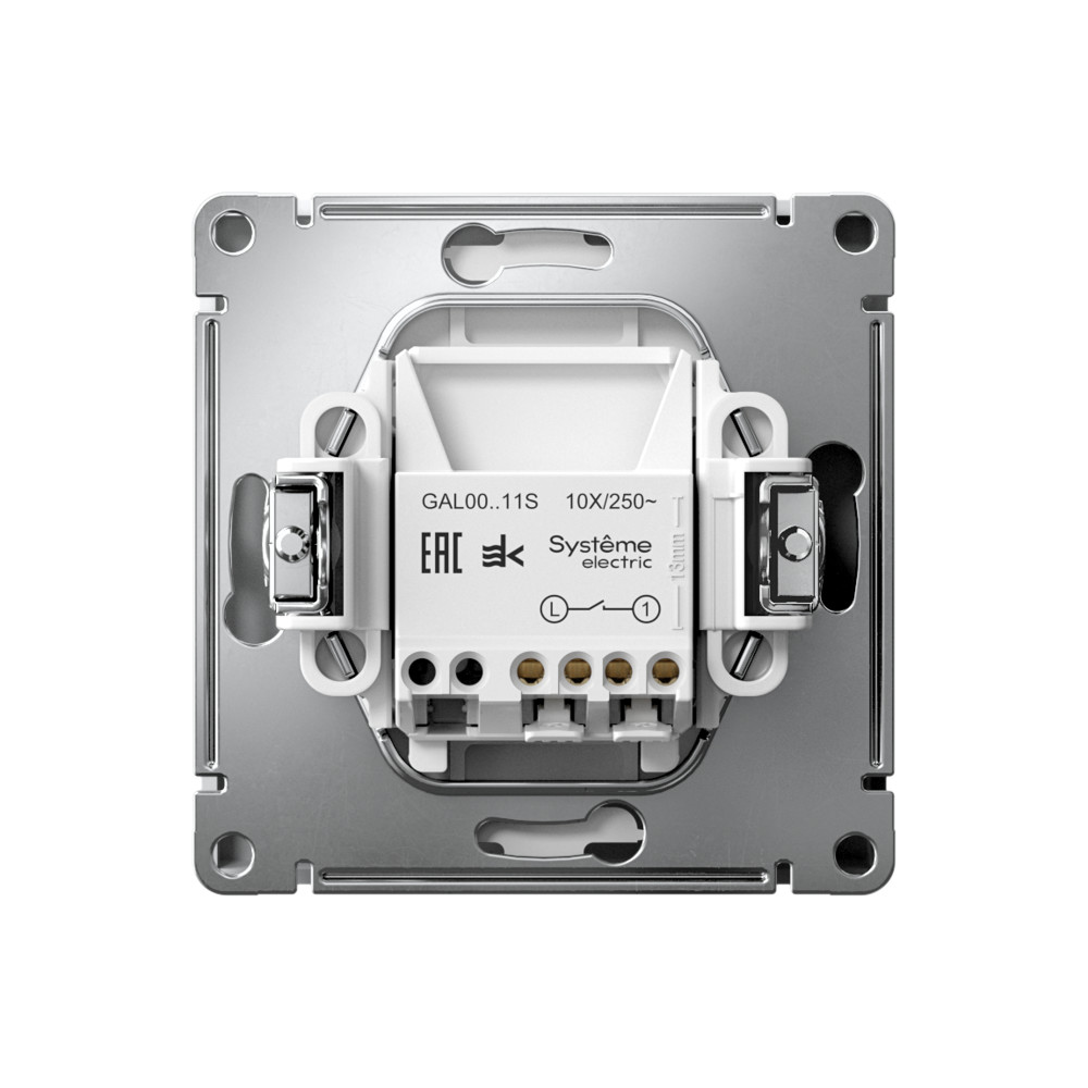 Механизм с быстрозажимными клеммами Systeme Electric серии ArtGallery в цвете белый выключателя 1-клавишного подходит для сетей 250 В, на ток 10 А. С помощью новых быстрозажимных клемм монтаж стал быстрее. Для подключения не требуется отвертка. Пластик с ионами серебра в белом цвете обеспечивает антибактериальный эффект. Лицевые детали из качественного ABS-пластика, устойчивого к царапинам и УФ-излучению. Лучший промышленный дизайн (по итогам премии МИНПРОМТОРГ 2023).