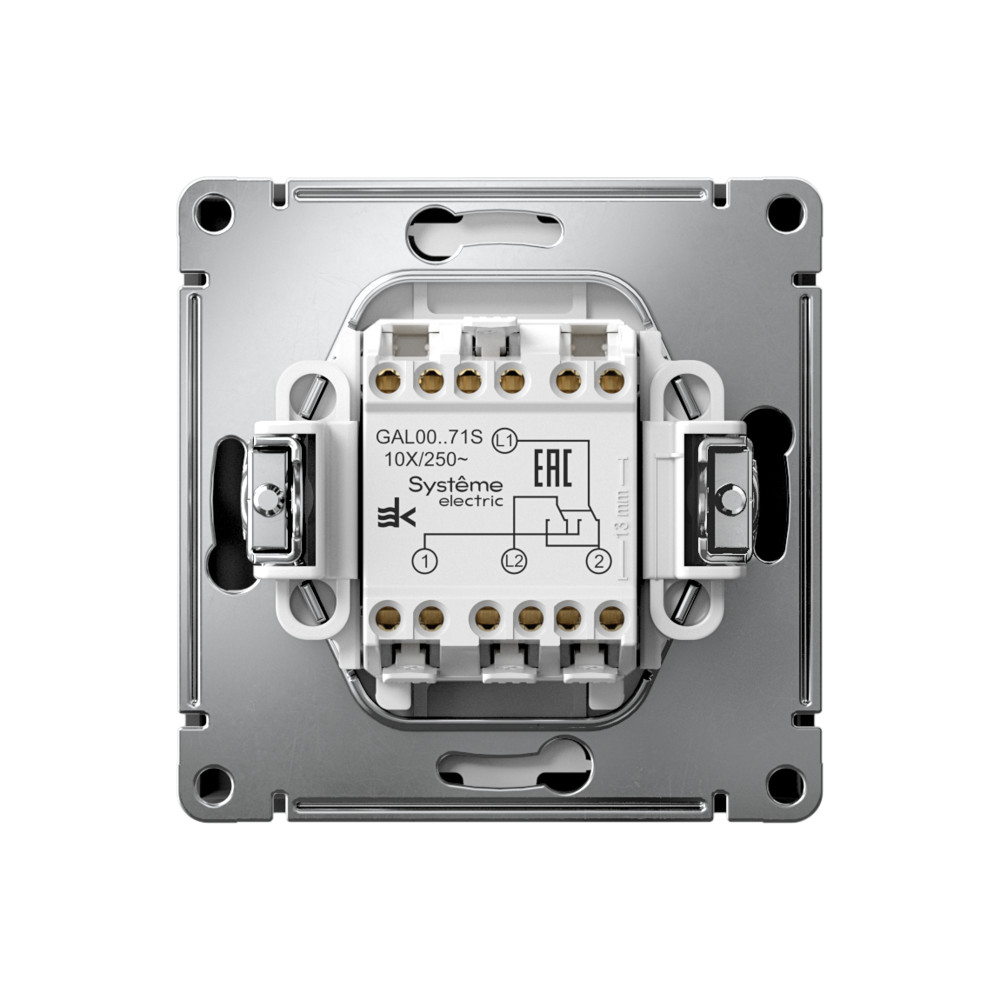 Механизм с быстрозажимными клеммами Systeme Electric серии ArtGallery в цвете карбон переключателя 1-клавишного перекрестного подходит для сетей 250 В, на ток 10 А. С помощью новых быстрозажимных клемм монтаж стал быстрее. Для подключения не требуется отвертка. К изделиям в этом роскошном цвете приятно прикоснуться. Лицевые детали из качественного ABS-пластика, устойчивого к царапинам и УФ-излучению. Лучший промышленный дизайн (по итогам премии МИНПРОМТОРГ 2023).