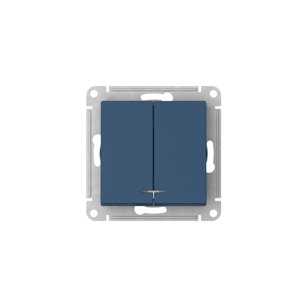 Механизм с быстрозажимными клеммами Systeme Electric (ранее Schneider Electric) серии AtlasDesign в цвете аквамарин 2-клавишного выключателя с подсветкой подходит для сетей 250 В, на ток 10 А. С помощью новых быстрозажимных клемм монтаж розеток и выключателей стал намного быстрее. Теперь подключение не требует использования отвертки.