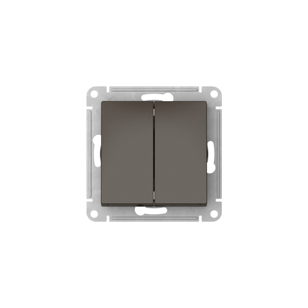 Механизм с быстрозажимными клеммами Systeme Electric (ранее Schneider Electric) серии AtlasDesign в цвете мокко 2-клавишного выключателя подходит для сетей 250 В, на ток 10 А. С помощью новых быстрозажимных клемм монтаж розеток и выключателей стал намного быстрее. Теперь подключение не требует использования отвертки.
