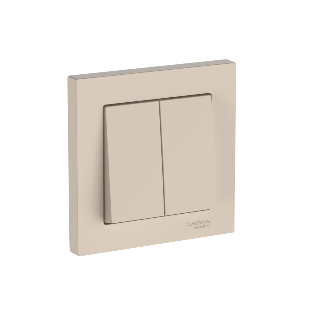 Механизм с быстрозажимными клеммами Systeme Electric (ранее Schneider Electric) серии AtlasDesign в цвете песочный 2-клавишного выключателя в сборе подходит для сетей 250 В, на ток 10 А. С помощью новых быстрозажимных клемм монтаж розеток и выключателей стал намного быстрее. Теперь подключение не требует использования отвертки.