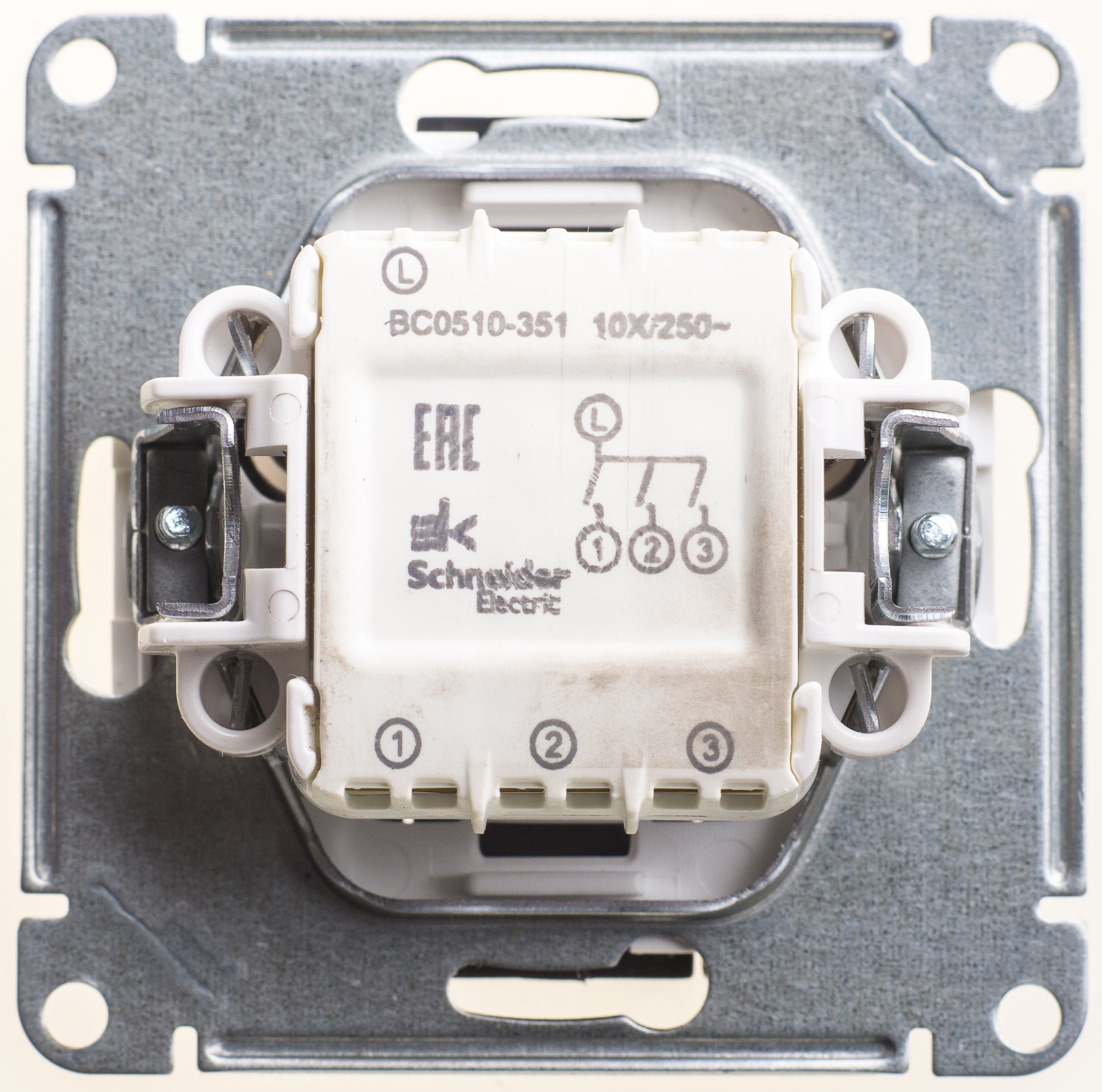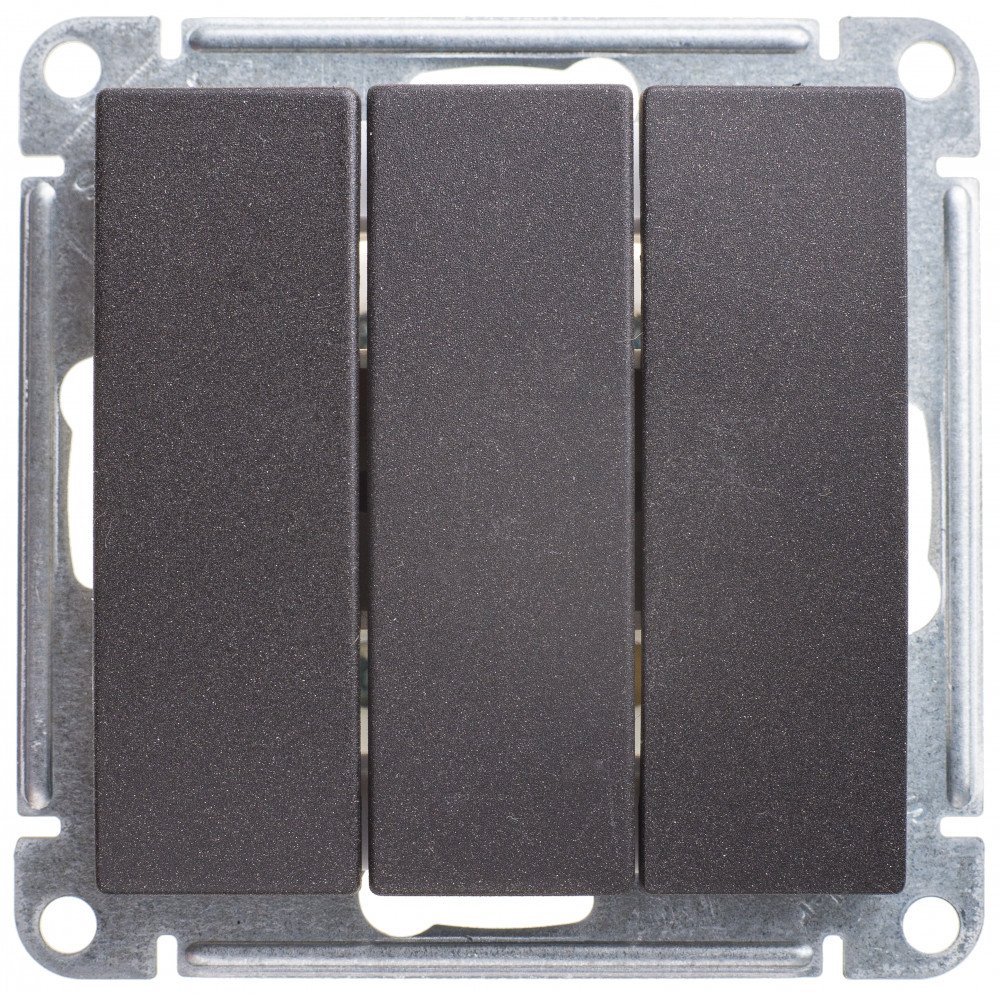Механизм Systeme Electric (ранее Schneider Electric) W59 (цвет чёрный бархат) выключателя 3-клавишного подходит для сетей 250 В, на ток до 10 А.