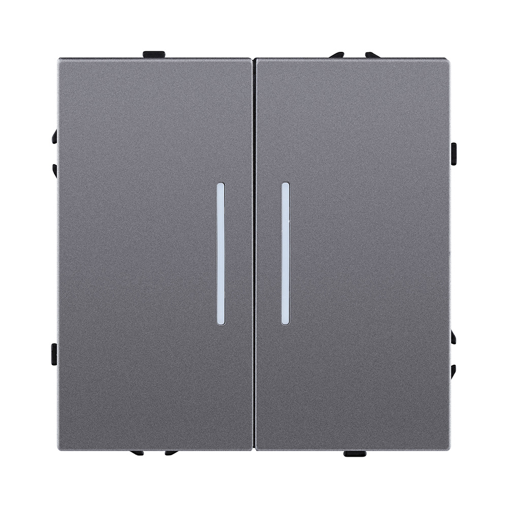 Выключатель 2-клавишный 10А/250В с LED подсветкой, серый Kollinger Eclipse EC-010GY. Относится к серии Eclipse, артикул производителя EC-010GY.