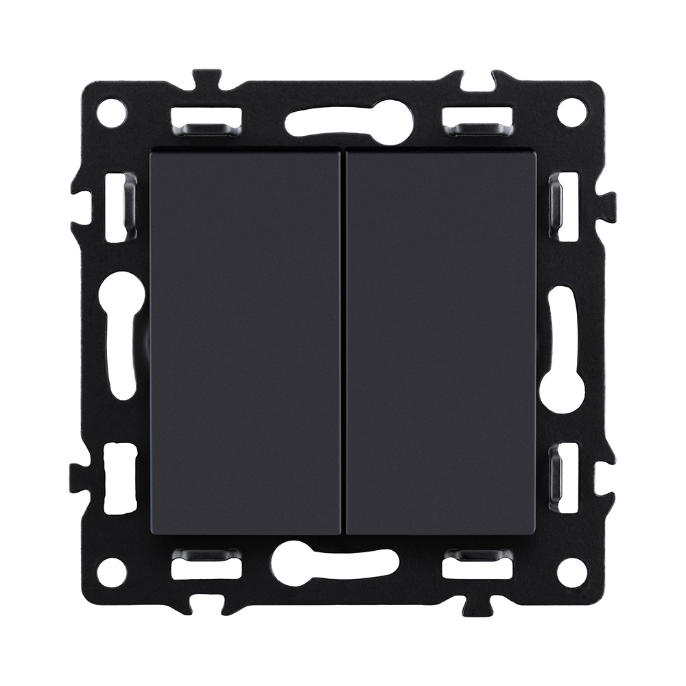Выключатель 2-клавишный проходной 10А/250В, черный Kollinger Asthetik AS-005BK. Относится к серии Asthetik, артикул производителя AS-005BK.
