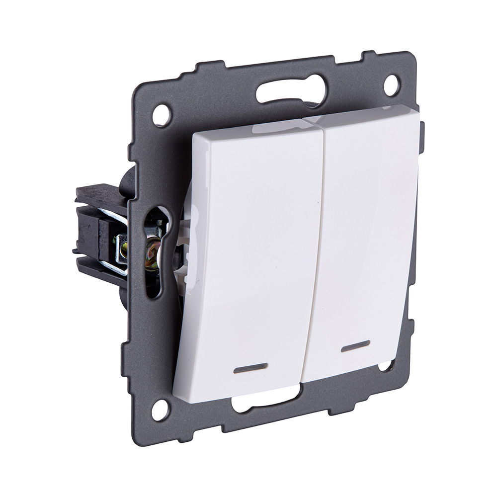 Выключатель 2-клавишный проходной 10А/250В с LED подсветкой, изогнутый, белый Kollinger REA-R-010WH для Aspekt, Eleganz, Reflex. Относится к серии Aspekt;Eleganz Acryl;Eleganz Plex;Reflex AL;Reflex MG, артикул производителя REA-R-010WH.