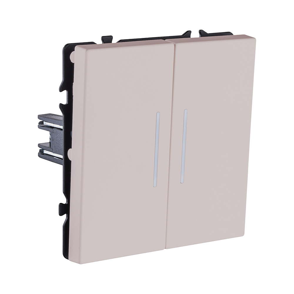 Выключатель 2-клавишный проходной 10А/250В с LED подсветкой, кашемир матовый Kollinger Eclipse EC-011CM. Относится к серии Eclipse, артикул производителя EC-011CM.