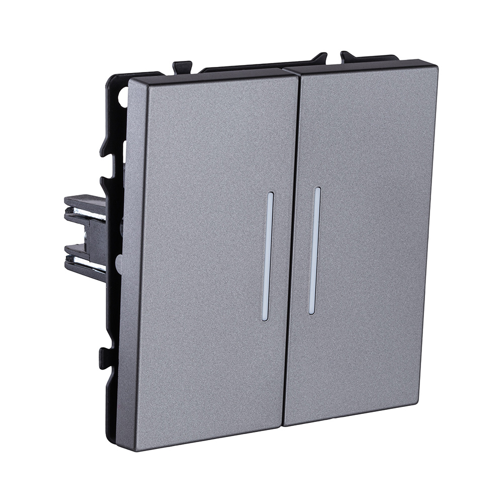 Выключатель 2-клавишный проходной 10А/250В с LED подсветкой, серый Kollinger Eclipse EC-011GY. Относится к серии Eclipse, артикул производителя EC-011GY.