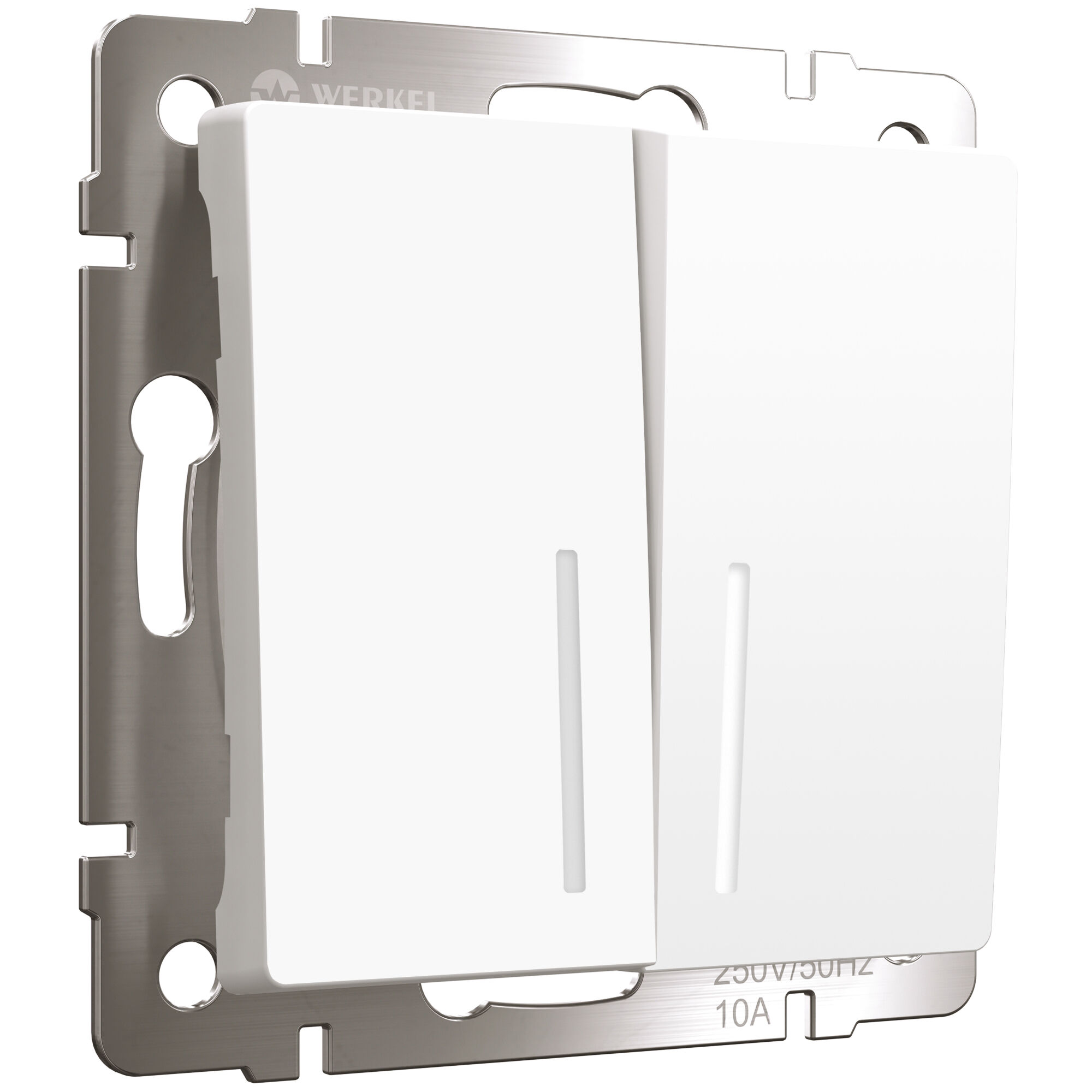 <div class="row mb-3"> <div class="col-12"> <p style="margin-top: 15px;">Механизм двухклавишного выключателя оснащен матовой лицевой панелью. Матовая поверхность – это современный тренд, задающий стиль вашему интерьеру. Она не бликует, обладает бархатистой фактурой и тактильной мягкостью. Белый цвет будет эффектно смотреться в любом интерьерном пространстве и гармонично сочетаться с любыми материалами.</p> <p>Белая светодиодная подсветка с мягким свечением обозначит механизм и поможет ориентироваться в помещении в темное время суток.</p> <p>Механизм выключателя оснащен качественной контактной группой из фосфорной бронзы и технического серебра (90% серебра, 10% никеля), которая выдерживает большую нагрузку и обладает большим сроком службы.</p> <p>Суппорт из нержавеющей стали позволяет надежно зафиксировать изделие в подрозетнике. Механизм с суппортом из нержавеющей стали устанавливается в стандартную монтажную коробку и надежно фиксируется с помощью винтов и распорных лапок. Декоративные рамки легко устанавливаются и надежно фиксируются на суппорте при помощи клипс Easy Click.</p> <p>Механизмы с матовыми накладками комбинируются с любыми рамками Werkel. Совместимость дает большой простор в создании множества уникальных сочетаний.</p> </div> </div>
