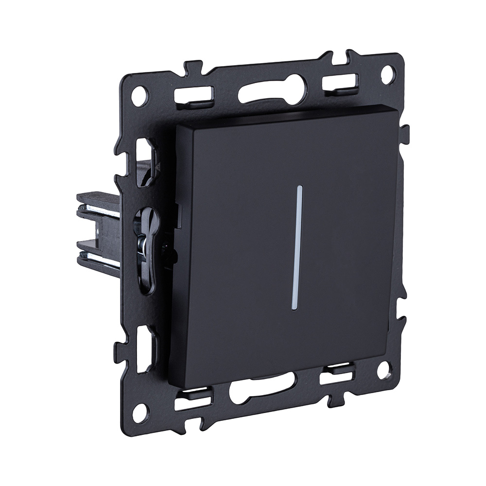 Выключатель кнопочный 1-клавишный 10А/250В с LED подсветкой, черный Kollinger Asthetik AS-012BK. Относится к серии Asthetik, артикул производителя AS-012BK.