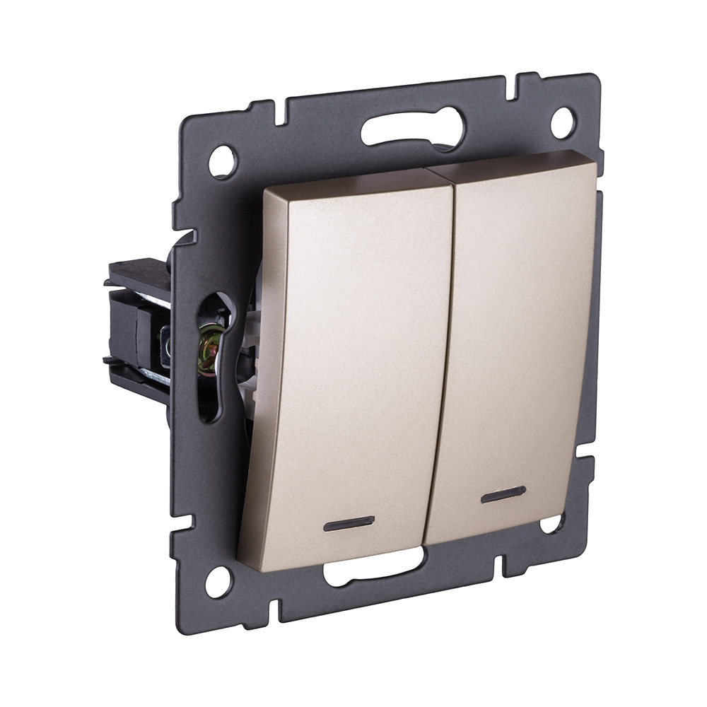 Выключатель кнопочный 2-клавишный 10А/250В с LED подсветкой, изогнутый, золотой Kollinger REA-R-014GD для Aspekt, Eleganz, Reflex. Относится к серии Aspekt;Eleganz Acryl;Eleganz Plex;Reflex AL;Reflex MG, артикул производителя REA-R-014GD.