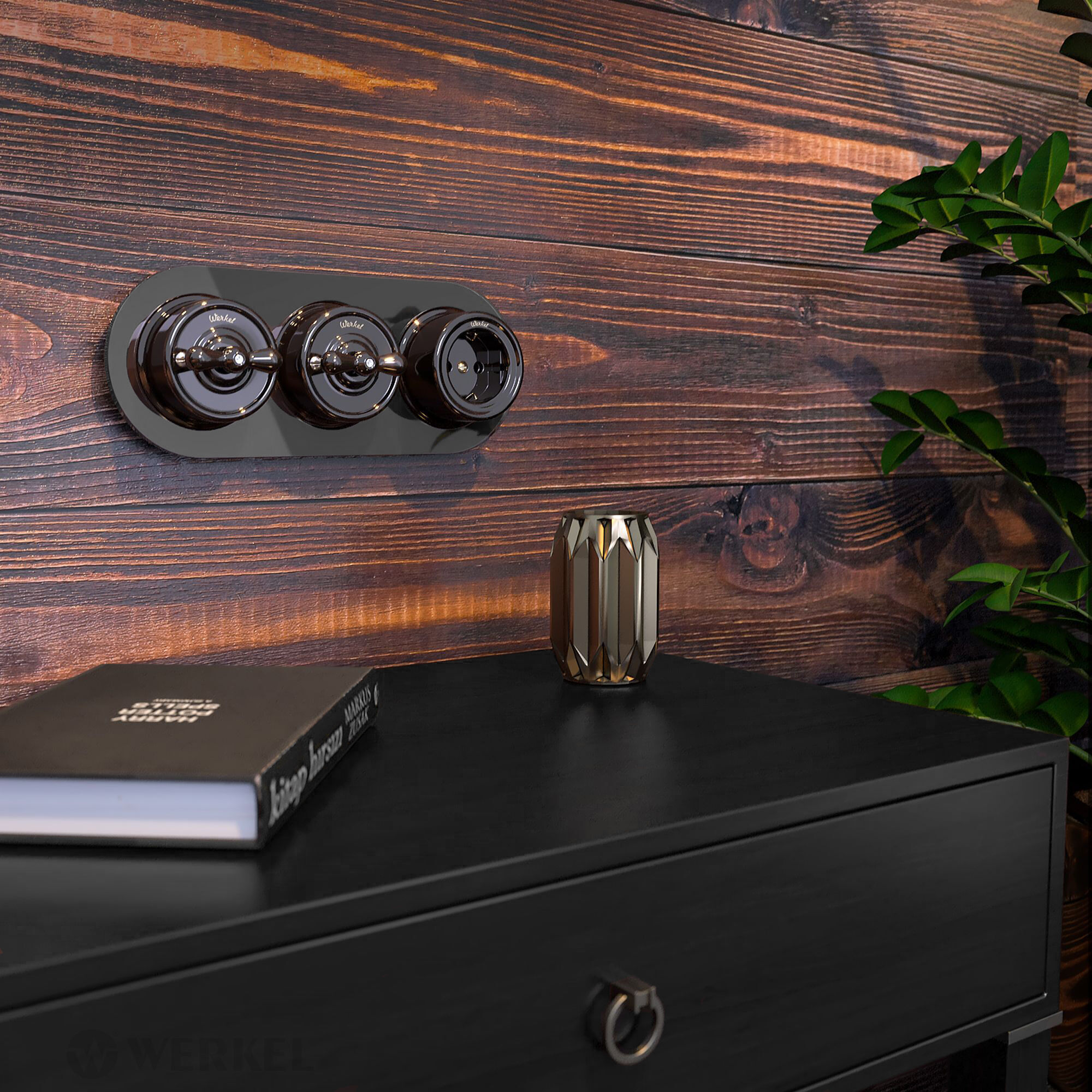 <p>Ретро переключатель двухклавишный (четыре положения) W5620014 в коричневом цвете 10 А 250 В, 50 Гц является важнейшим элементом любой домашней электросети, служащим для управления света. Выключатель представляет собой механизм с поворотным переключением, имеющий керамический корпус и сменную ручку-барашек. <p><p> Накладной переключатель не требуют дополнительных работ по монтажу отверстий и его можно устанавливать на любые поверхности. Переключатель имеет удобное подключение проводов с сечением от 0.75 мм кв до 2.5 мм кв, которое осуществляется с помощью самозажимного механизма. <p><p> Керамический корпус обладает высокой механической прочностью, термостойкостью и диэлектрическими свойствами. Выключатель совместим со всеми ретро рамками из коллекций Werkel, характеризуется удобством использования и имеет эстетический внешний вид. <p><p>