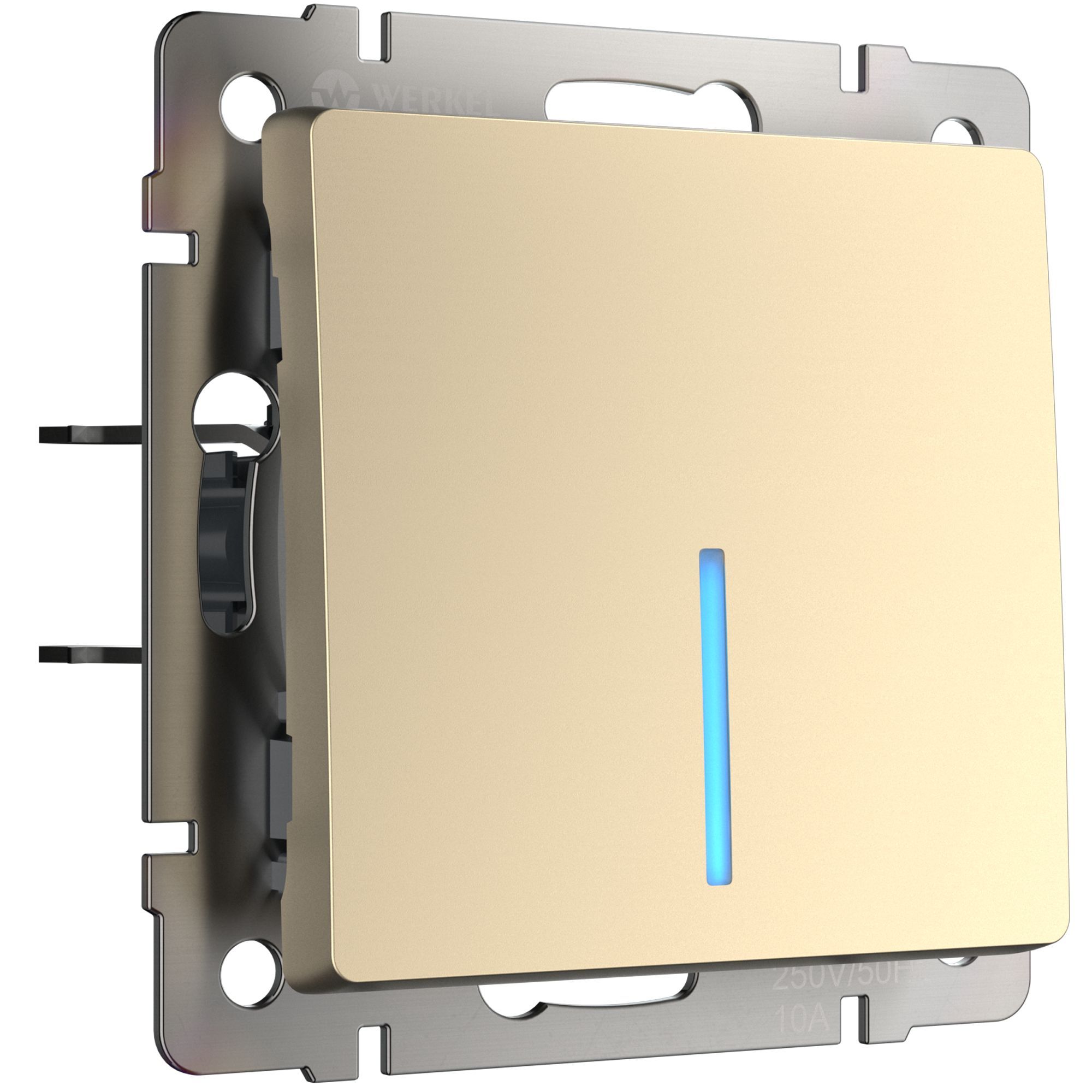 <p>Встраиваемый одноклавишный выключатель в цвете шампань с LED подсветкой 10 А 250 В, 50 Гц W1110111 является важнейшим элементом любой домашней электросети, служащим для управления света. Приглушенное свечение светодиодов позволяет легко найти выключатель в темное время суток и помогает ориентироваться в квартире, доме или помещении. Выключатель представляет собой механизм нажимного типа, имеющий металлический суппорт и декоративные накладки.</p> <p>Электроустановочное изделие монтируется в установочную коробку, оставляя видимым только внешнюю лицевую панель и накладную рамку. Механизм для скрытой установки оснащен суппортом из нержавеющей стали, позволяющий крепко зафиксировать изделие в подрозетнике. Надежные контакты из фосфористой бронзы и серебра выдерживают большую нагрузку и обладают большим эксплуатационным ресурсом 40 000 циклов.</p> <p>Накладки выполнены из высококачественного поликарбоната, устойчивого к высоким температурам. Механизм имеет удобный способ подключения проводов с сечением от 0.75 мм кв до 2.5 мм кв. Встраиваемый одноклавишный выключатель со светодиодной подсветкой характеризуется удобством использования, безопасностью и обеспечивает стабильное срабатывание механизма.</p> <p></p>