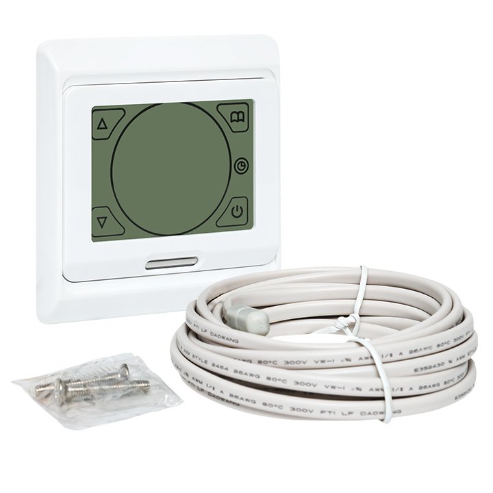 Сенсорные электронные программируемые терморегуляторы серии ett-3 рекомендуются для управления системами электрического и водяного обогрева. Терморегулятор оснащен удобным ЖК-дисплеем на сенсорном управлении. На экране отображаются текущие параметры функционирования прибора, календарь и время. Терморегулятор оснащен встроенным и выносным датчиком температуры, он постоянно отслеживает состояние температуры помещения, отдает команды на включение или отключение систем отопления «теплый пол». Предназначен для внутреннего применения и рассчитан на работу при окружающей температуре от -5 до +50 °С. В терморегуляторе предусмотрено сразу три режима функционирования: ручной (команды отдаются пользователем) автоматический и комфортный режим программирования. Функция недельного программирования даёт возможность разделить сутки на шесть периодов и автоматически поддерживать различную температуру в каждом периоде отопительных приборов на неделю.
